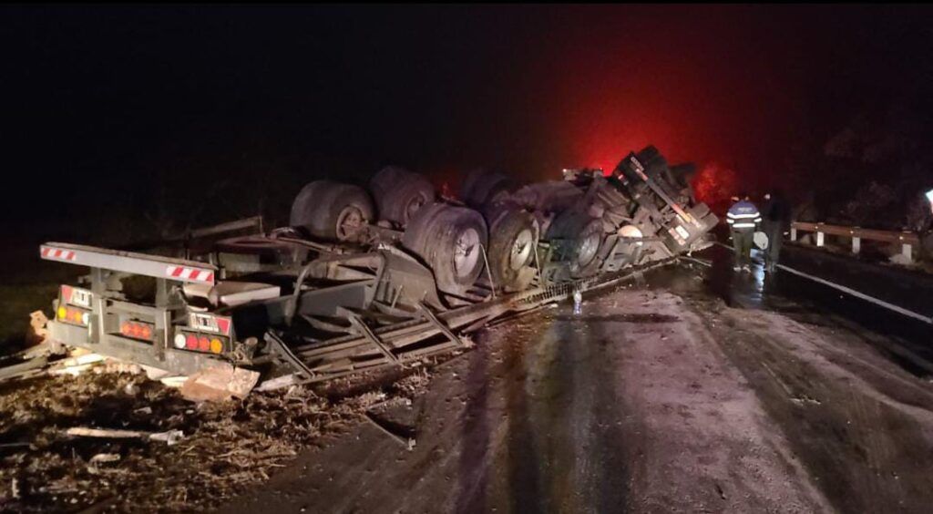 Por causas que se investigan cerca de las 2 de la madrugada, un camión marca Iveco con semirremolque terminó volcando en el km 41 de autovía ruta Nº19 la altura de la localidad de Sa Pereyra.