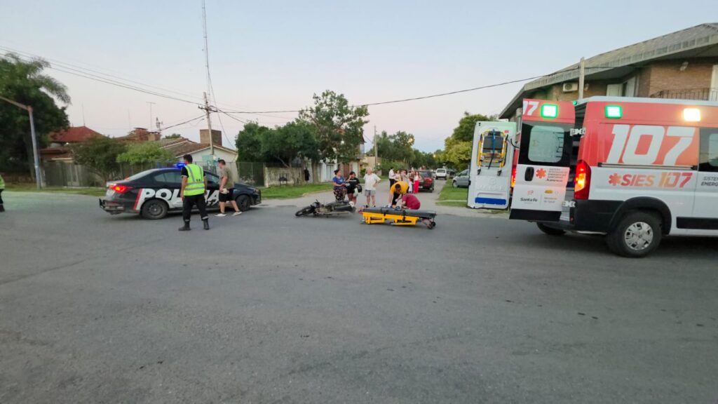 El accidente ocurrió en la intersección de ruta 1V11 y calle Beethoven. Un motociclista de 41 años resultó herido y fue trasladado al Hospital Protomédico.