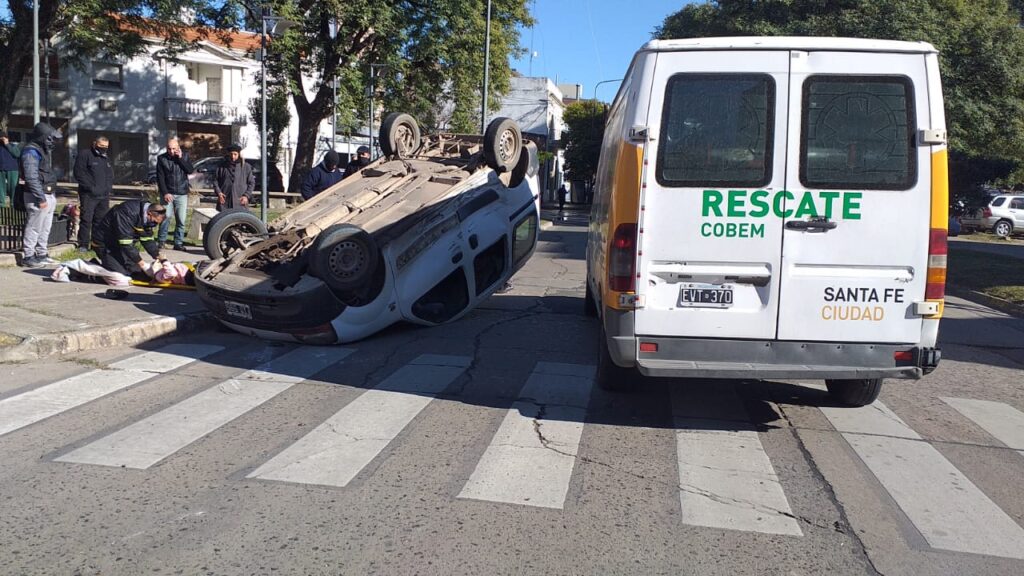 Ocurrió pasadas las 11 de la mañana en la intersección de Mariano Comas y San Jerónimo. El móvil de RADIO 104.5 estuvo allí presente. Dos camionetas una Partner, donde iban tres mujeres, una de 44 años y otras dos de 19, y una Kangoo, con dos ocupantes. La primera de ellas termino tumbada por completo y dos de las mujeres quedaron atrapadas dentro.