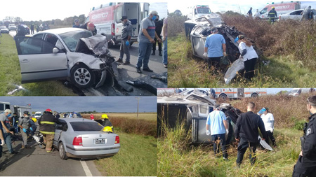 Impactante accidente frontal entre dos vehiculos sobre Ruta Nacional 11, km 571.