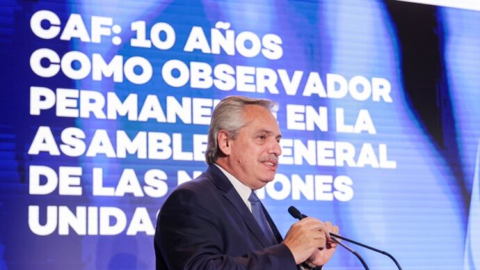 El presidente Alberto Fernández abogó este lunes porque los países de América Latina y el Caribe trabajen «juntos» para reducir la desigualdad e insistió en su reclamo del fin de los bloqueos económicos, al disertar en Nueva York en un encuentro de la Corporación Andina de Fomento (CAF)-Banco de Desarrollo de América Latina.