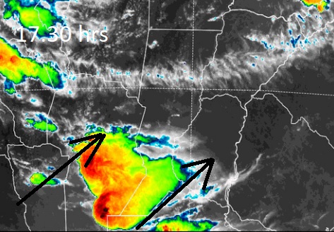 Desde el Centro Monitoreo Meteorológico y Climático SAT informan de un avance de tormenta hacia nuestra región. El fenómeno llegaría durante esta tarde a la zona sur y centro de la provincia de Santa Fe.