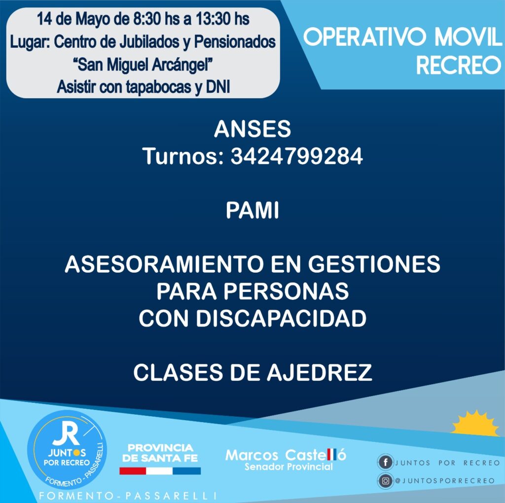 En esta oportunidad brindarán atención PAMI, Asesoramiento en Discapacidad y Anses. Para este último es necesario solicitar turno previamente al 3424799284. Cabe aclarar que para Anses, sólo se otorgarán 10 turnos, ya que hay cupos asignados previamente, que corresponden al operativo que se suspendió durante el mes pasado.
