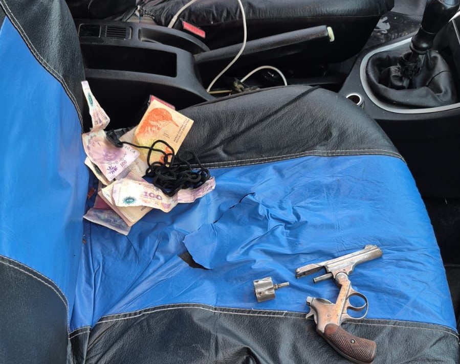 Durante la inspección del vehículo, los efectivos hallaron un revólver calibre 22 oculto detrás del estéreo.