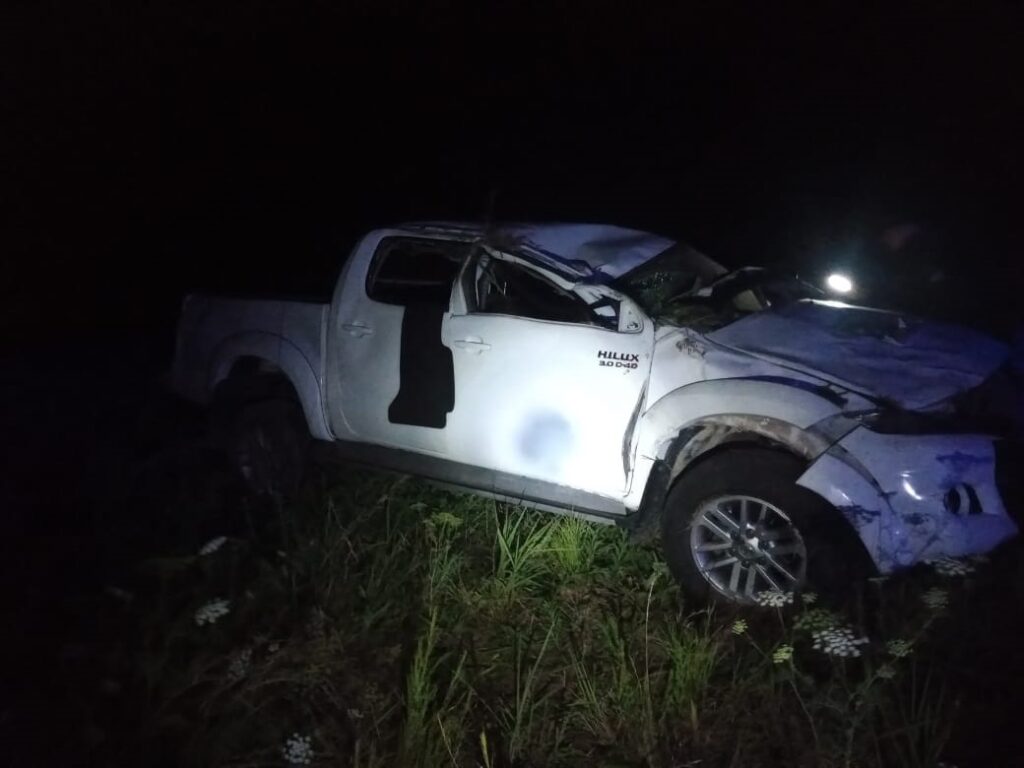 Por causas que se investigan una camioneta blanca Toyota Hilux habría perdido el control y volcado en inmediaciones de una curva a la altura del Km 23 de esta ruta provincial. Unos 25 kms al norte de la capital provincial.