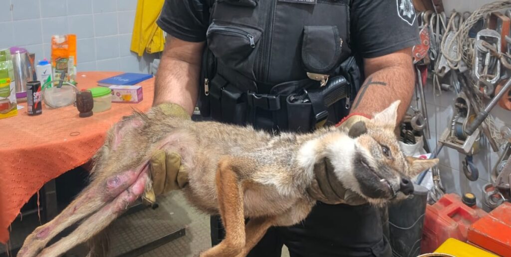 Según se informó, el zorro era de tamaño mediano y presentaba dificultades para mover sus patas traseras, lo que impedía su desplazamiento. Frente a este cuadro, se realizaron maniobras no invasivas para garantizar su seguridad y evitar que sufriera mayores lesiones.