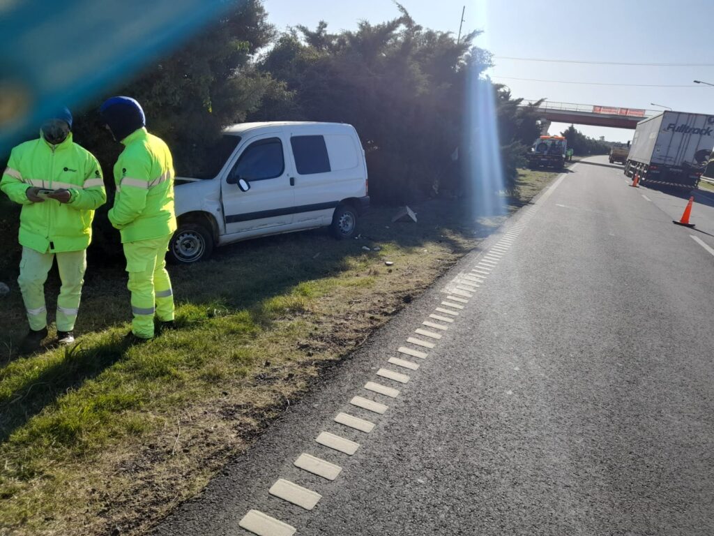 Este viernes por la mañana por causas que se investigan un Citroen Berlingo impactó contra los arbustos del cantero central de la autopista Santa Fe-Rosario km 151.