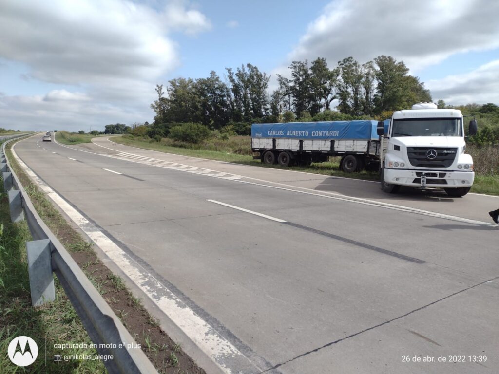 Luego de las maniobras necesarias para retirarlo la policía Vial debió realizar un operativo de cierre de tránsito y desviar a todos los vehículos a ruta 1V11 hasta tanto el camión pueda salir del tramo contramano.