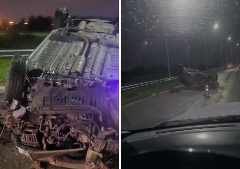 Provocó importantes demoras Impactante: Un auto volcó en Av. Circunvalación Oeste, altura del acceso al Hipódromo
