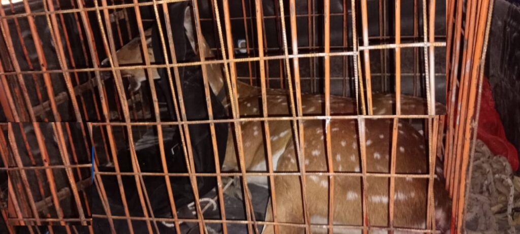 Agentes del Comando Radioeléctrico fueron comisionados por la Central 911 luego de que una patrulla visualizara a un ciervo con las patas atadas y una herida en el hocico, rodeado por un grupo de vecinos que intentaban asistirlo.