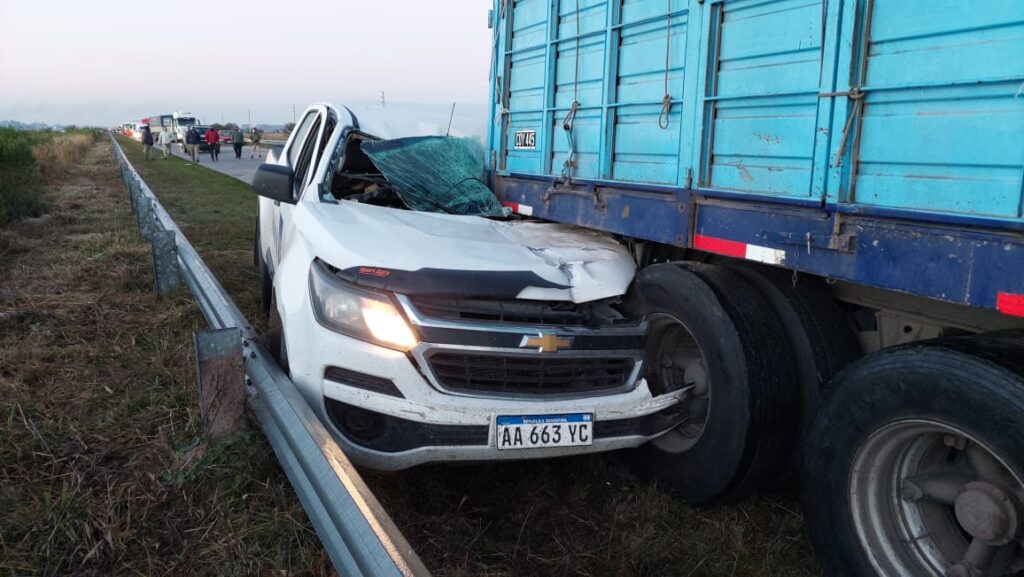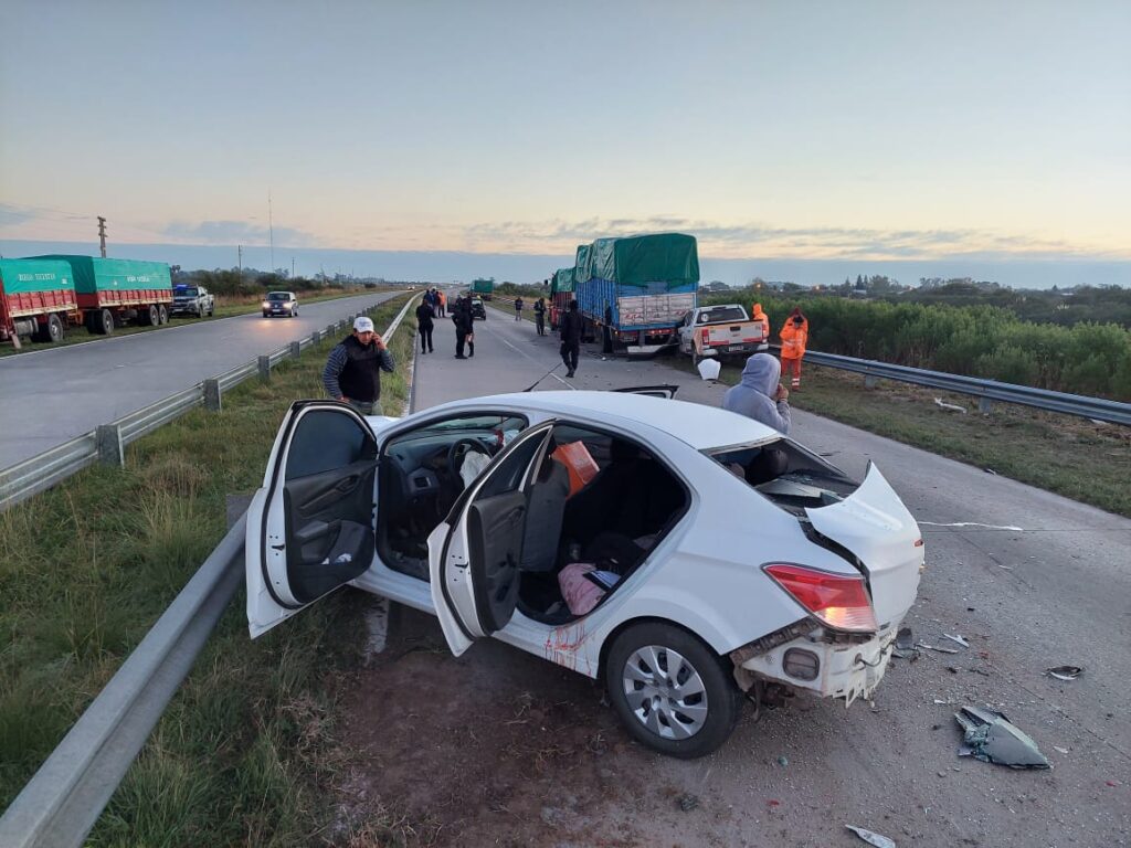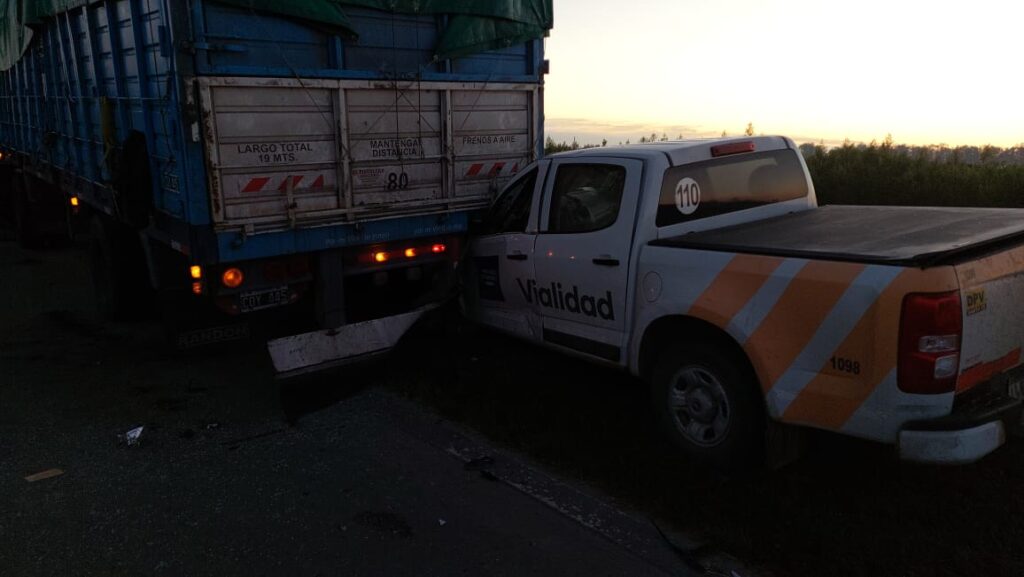 Según el testimonio del conductor de uno de los vehículos se encontraba estacionado un camión con acoplado con problemas mecánicos. Un Chevrolet Corsa que circulaba en el carril de la derecha al ser sorprendido por el acoplado estacionado se corre al carril izquierdo. Detrás circulaba el Chevrolet Prisma quien termina chocándolo. Y detrás circulaba la camioneta Chevrolet S-10 de Vialidad Provincial que impacta con el auto y termina luego chocando con la parte trasera del acoplado.
