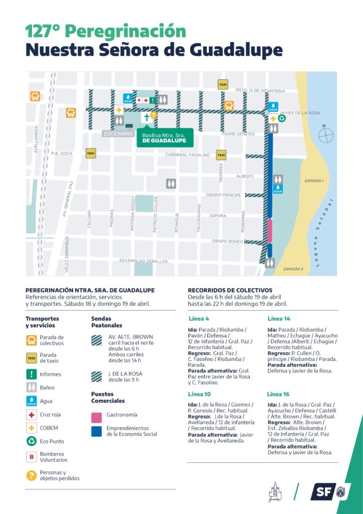 El domingo, desde las 6 partirá la peregrinación desde Bv. Gálvez y Necochea, y lo harán hacía el norte por Necochea, al llegar a la vía, continúa por Gral. Paz y a la altura de Javier de la Rosa doblan hacía el este hasta llegar a la Basílica. Se realiza acompañamiento y ordenamiento con inspectores. Vale aclarar que todos los cortes se mantienen hasta las 22 del domingo.