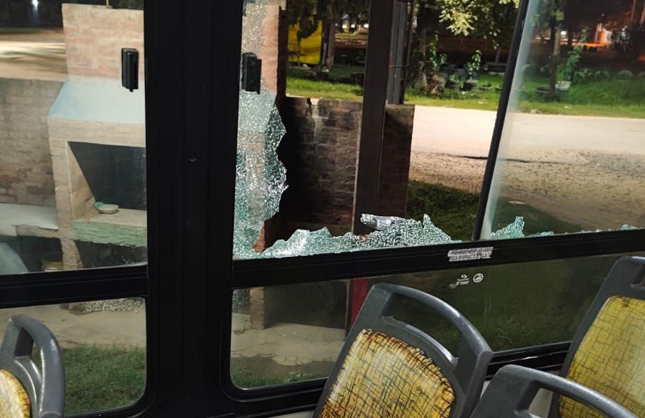 Según el reporte policial, el conductor, un hombre de 52 años, indicó que al finalizar el recorrido escuchó la rotura de uno de los ventanales del lado derecho de la unidad mientras circulaba.