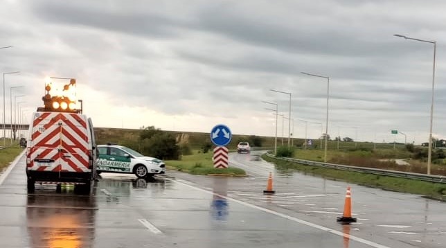 El desvío para tránsito pesado, transporte de pasajeros y camionetas se realiza por la Ruta Provincial 15 hasta la Ruta Nacional 1V09 (ex RN 9), con precaución por presencia de agua sobre la calzada. Luego, los vehículos retoman la autopista entre Tortugas y General Roca.
