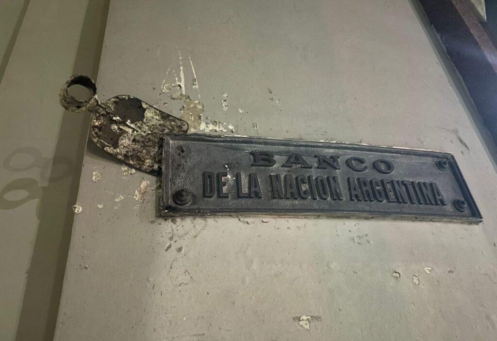 En Rosario Detienen a un hombre cuando intentaba arrancar una placa de bronce del Banco Nación