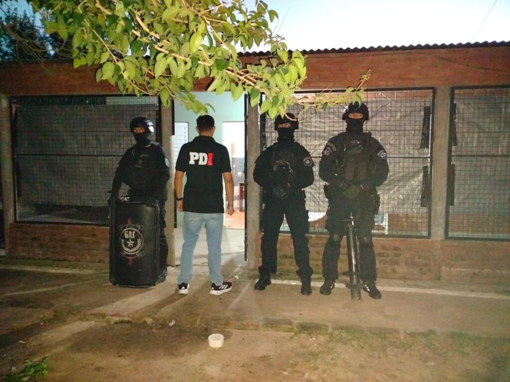 Seguidamente, personal de la Sección Delitos Calificados realizó tareas investigativas, logrando individualizar a los presuntos autores; por ellos este martes realizaron allanamientos en los siguientes domicilios: Barrio Cruz Roja, donde detuvieron a T. N.M. y secuestraron una moto Honda GLH 150 con pedido activo por robo.