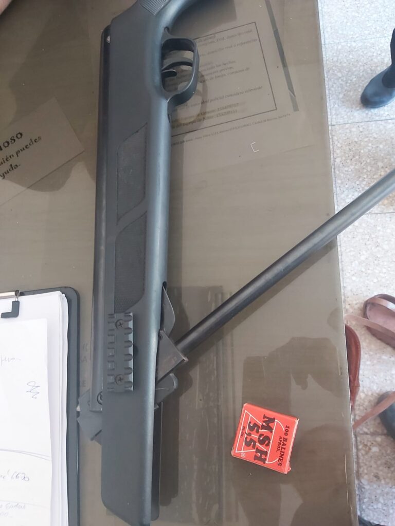 Allí, se detiene a un joven de 18 años y a un hombre de 43 años quienes se conducían en una moto marca Motomel, además de tener en su poder un aire comprimido Fox calibre 5,5.