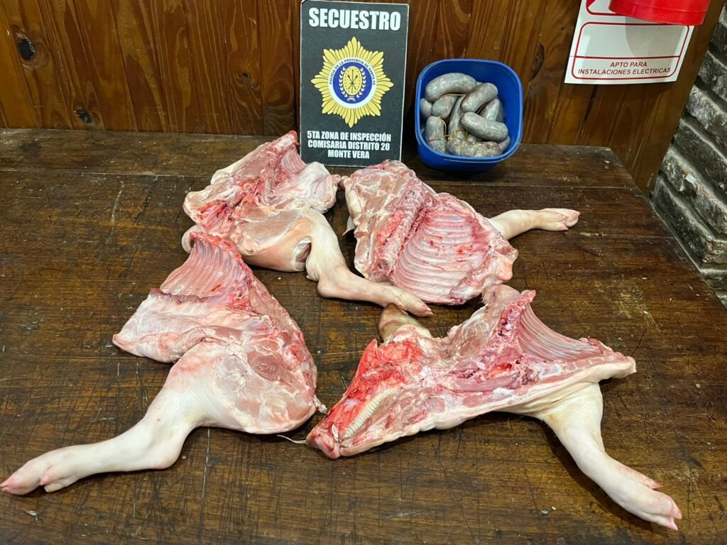 Una requisa se realizó en calle La Pampa al 1100, donde se procedió al secuestro de dos medias reses de entre cinco y seis kilos cada una y 15 chorizos. En el lugar fue trasladado a sede policial un hombre identificado como C.B., de 44 años, para continuar con las diligencias sumariales.