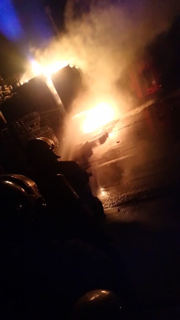 Los bomberos continúan en la estación para enfriar la máquina de 40 megavatios de potencia, una prioridad para que los técnicos de la EPE puedan evaluar los daños en la infraestructura eléctrica.