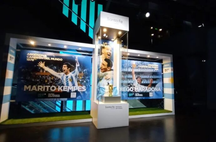 La pieza es una réplica que pertenece a la colección permanente del espacio y, en ocasión de la Copa del Mundo Qatar 2022, se exhibe en un stand diseñado especialmente. El mismo muestra a los laterales los dos campeonatos del mundo que conquistó la albiceleste, Argentina 1978 y México 1986 y, en el centro la imagen de Messi junto a Di María y el trofeo, la tercera copa conquistada por la selección nacional.