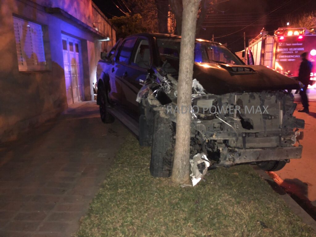 El conductor de la Pick Up Toyota Hilux escapó de un control policial conduciendo en contramano por Castellanos y luego por Schneider. En la huida terminó chocando el frente de una casa en calle Chacabuco quedando sobre la vereda, entre los arboles y la vivienda.