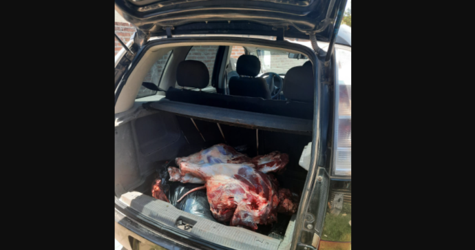 Luego, hallaron el establecimiento agropecuario de la zona de Videla, donde el detenido robó y faenó el novillo, hallando la cabeza del animal baleada. Investigan ahora si esa carne sería vendida en carnicerías sanjustinas.