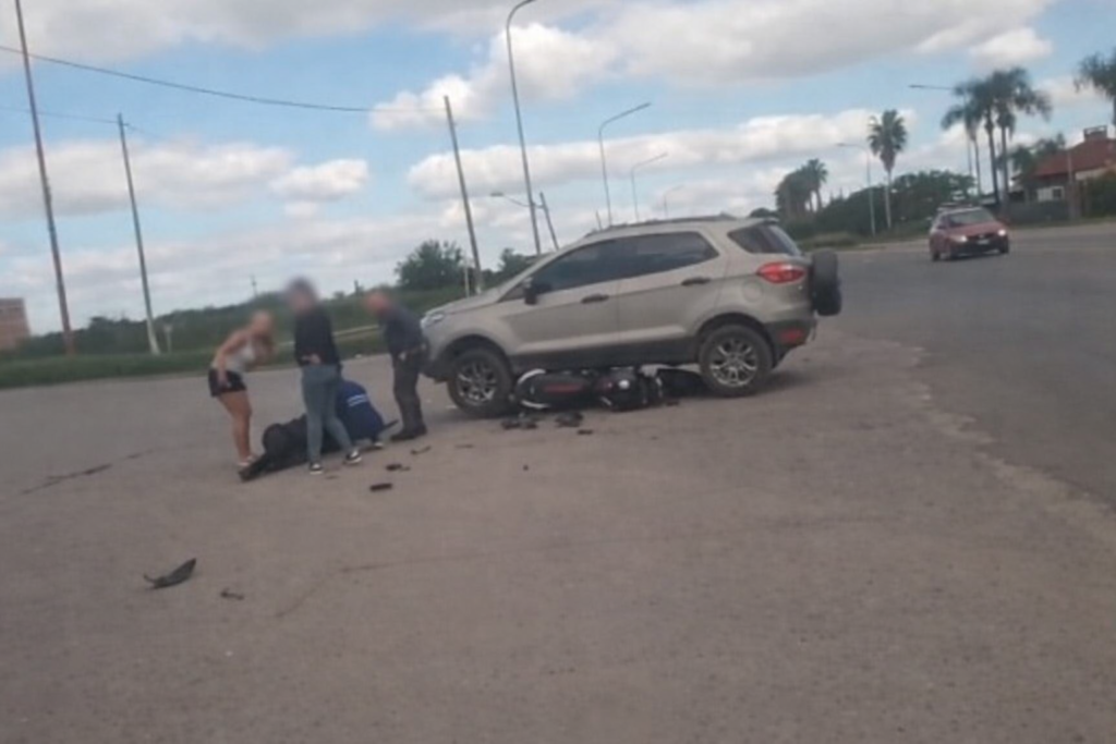 Por causas que aún se tratan de establecer, colisionaron un automóvil Ford EcoSport de color beige, y un motovehículo Honda CG Titan 150 cc, guiado por una mujer.