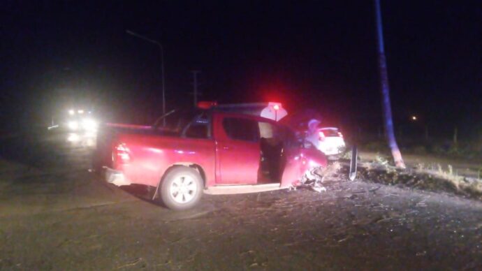 Una camionetas Toyota Hilux que circulaba por ruta Nacional N°11 terminó impactando contra una columna de iluminación que se encuentra unos metros al norte del ex peaje, hoy puesto de la policía vial provincial.