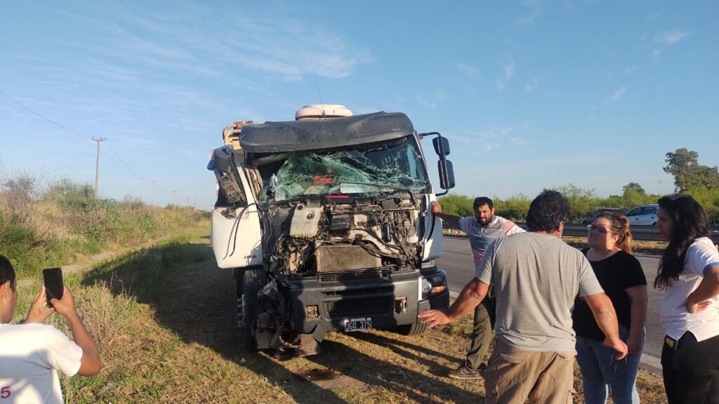 Uno de los camiones es una barredora de la empresa Cliba, el otro un camión con acoplado. Ambos circulaban de norte a sur por circunvalación Oeste. Por razones que se desconocen impactaron fuertemente. La barredora terminó volcada dentro de un zanjón, mientras que el otro camión con un fuerte impacto en el frente.