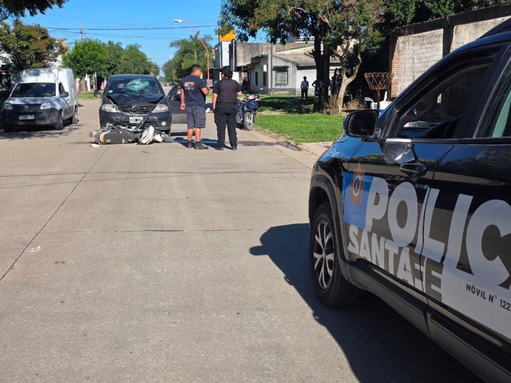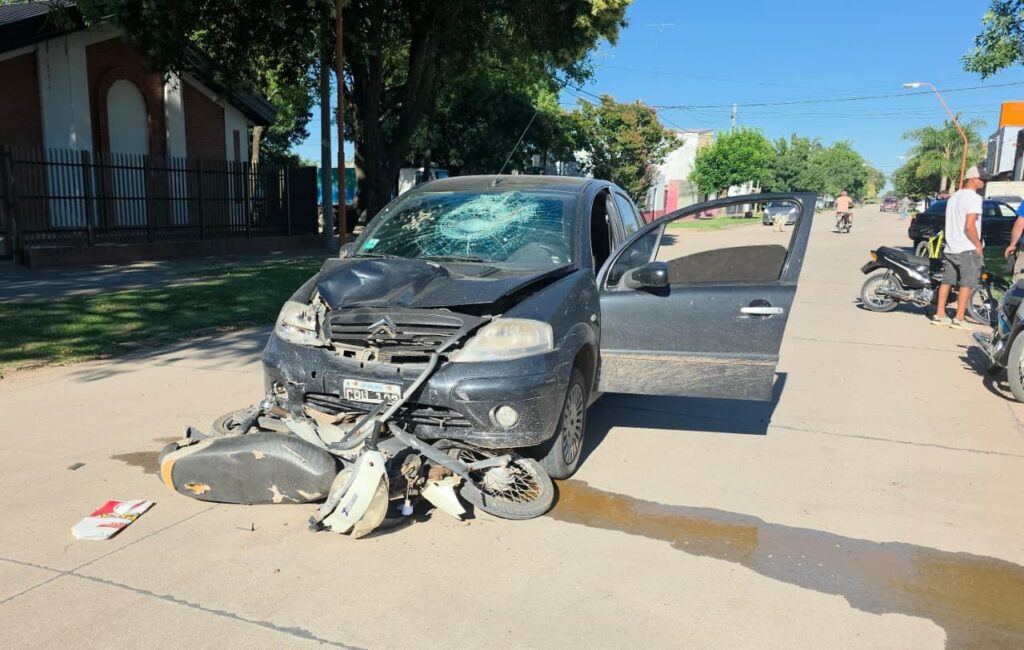 El choque ocurrió esta mañana en la esquina de Clucellas y Cafferatta. El motociclista sufrió una fractura en una pierna y un fuerte golpe en la cabeza, por lo que fue trasladado al Hospital Protomédico.