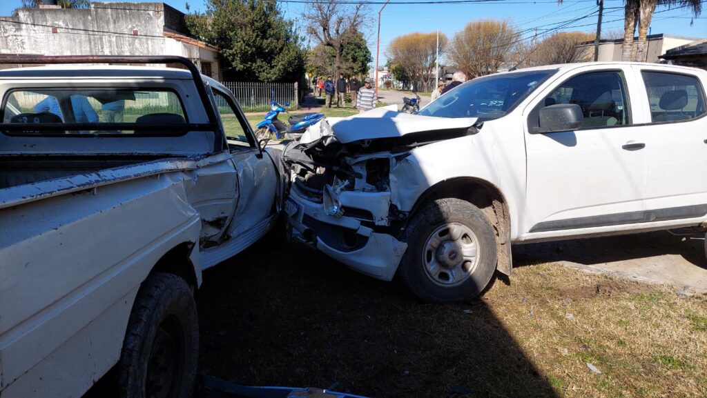 Esta mañana, minutos antes a las 11 horas, en la esquina de las calles Simón de Iriondo y Mateo Booz, colisionaron dos camionetas. Se trata de una Chevrolet S-10 que circulaba de sur a norte y la otra, una Peugeot 504, de oeste a este.