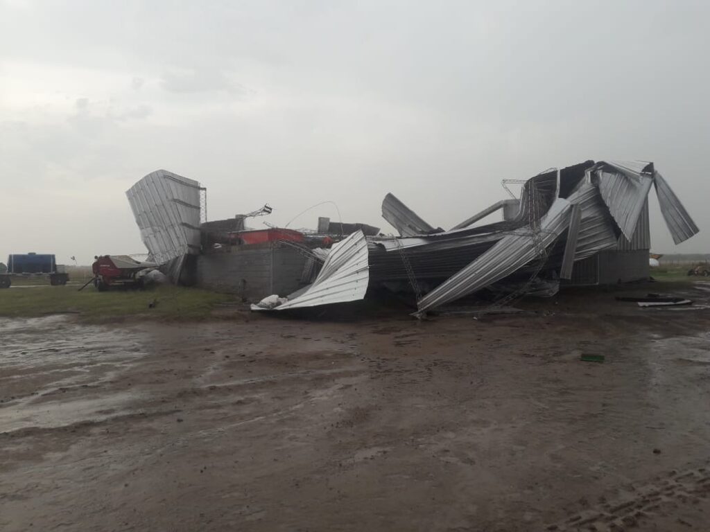 En zona rural el viento también hizo desastre, levantó techos de galpones donde guardan maquinarias y herramientas.