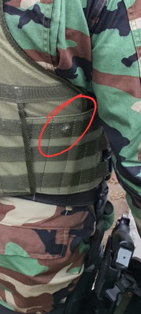 El efectivo perteneciente al GOE estaba por ingresar a una vivienda sobre Cafferata y Montovani. Afortunadamente el chaleco le salvó la vida.