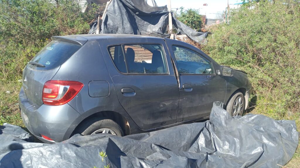 El Renault Sandero sufrió la rotura del vidrio de la ventanilla del conductor,  el capot y puerta barreteadas. Además, le sacaron la patente y se robaron la batería.