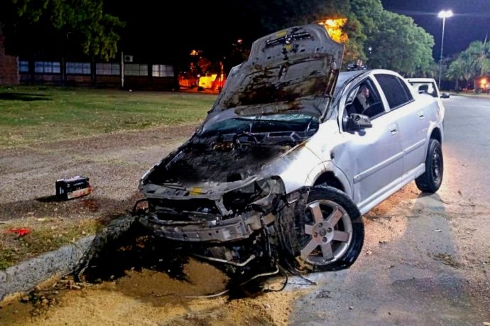 Chocaron, volcaron y el auto se prendió fuego, a la altura del Faro, sobre Avenida de los 7 Jefes.