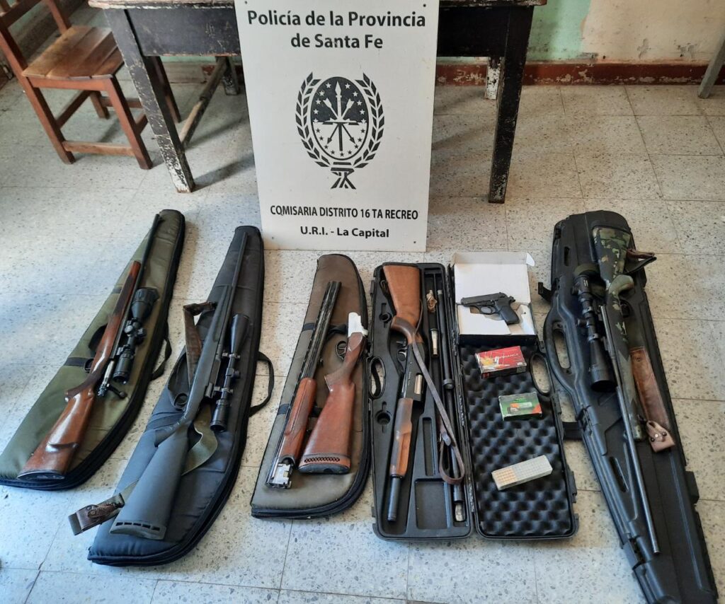 La requisa domiciliaria se ejecutó en la vivienda del hombre denunciado, y arrojó como resultado el secuestro de: una escopeta tiro a tiro de dos caños superpuestos marca HUGLU modelo 104 calibre 12 con estuche, un fusil de repetición marca Remington modelo700 calibre 243 PLG con mira telescópica con su respectivo estuche, una carabina de repetición marca Marlín modelo XS7 calibre 308 PLG con mira telescópica en un estuche negro, una pistola semi automática marca Bersa modelo Thunder 380 calibre 380 PLG ACP (que es un arma de guerra, popularmente conocida como una 9 milímetros chica), una escopeta de repetición marca Akkar modelo Stopping Power calibre 12 con cañón largo de 600 milímetros con su adaptador, una carabina de repetición marca Savage modelo Axis calibre 243 PLH con la mira telescópica, y una caja con 35 municiones calibre 22 punta hueca, una caja negra de municiones 243 marca Winchester con 14 municiones y una caja con 5 cartuchos calibre 12 marca Rottweiler. Si bien no se comunicó oficialmente, las armas estarían registradas.