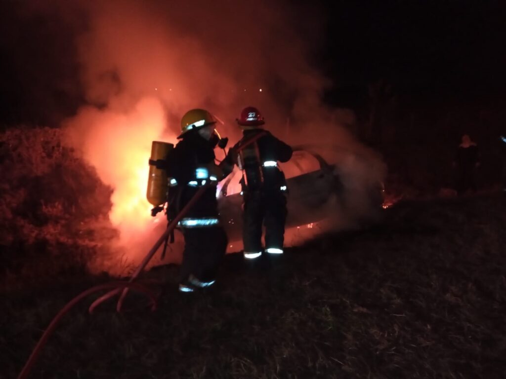 Bomberos Voluntarios de Recreo y Zapadores Zona Norte llegaron al lugar y combatieron las llamas que consumieron todo el coche.
