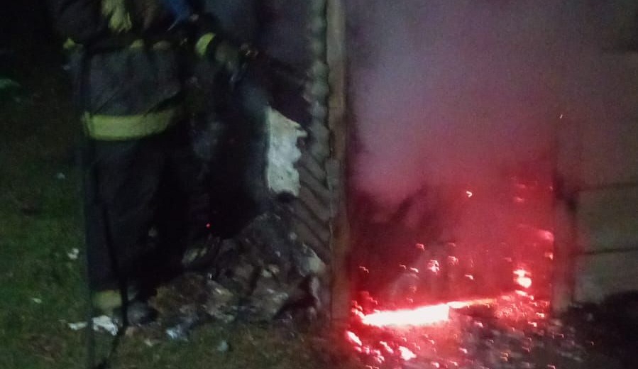 Al arribar al lugar, se constató que las llamas habían tomado una estructura de aproximadamente tres metros por lado, levantada con postes y tirantes de madera, con cerramientos y techo de chapa, ubicada en un terreno lindero al terraplén.