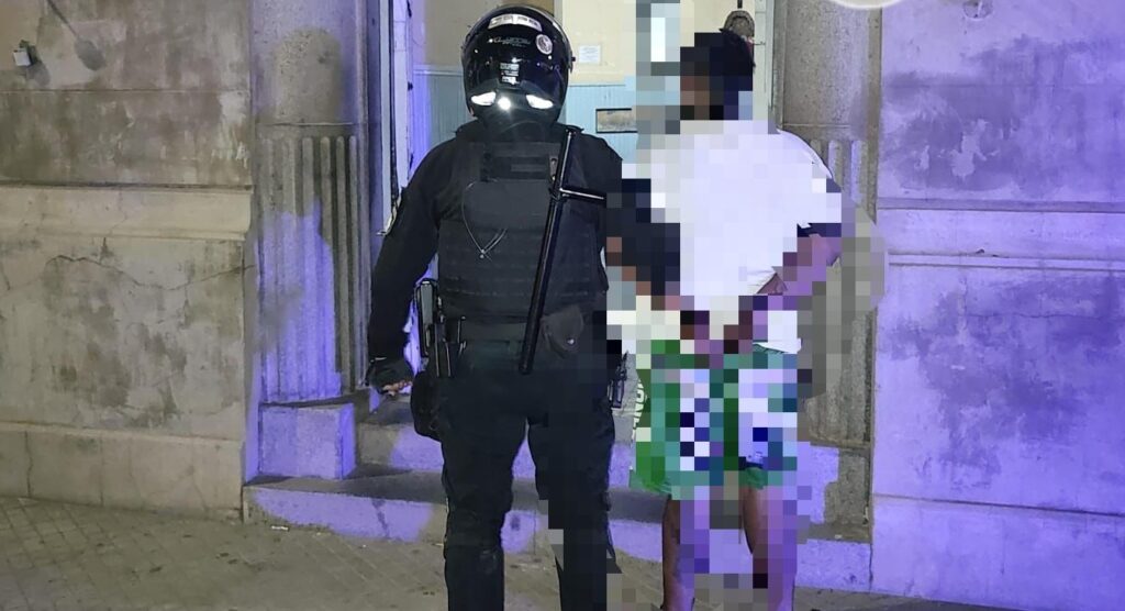 Al llegar, los agentes individualizaron a uno de los implicados, quien vestía un gorro blanco. Al realizarle un chequeo preventivo, encontraron entre sus pertenencias una barra de hierro nervado de aproximadamente 20 centímetros, con una de sus puntas afiladas en forma de chuza y una empuñadura improvisada con goma de cámara de bicicleta.