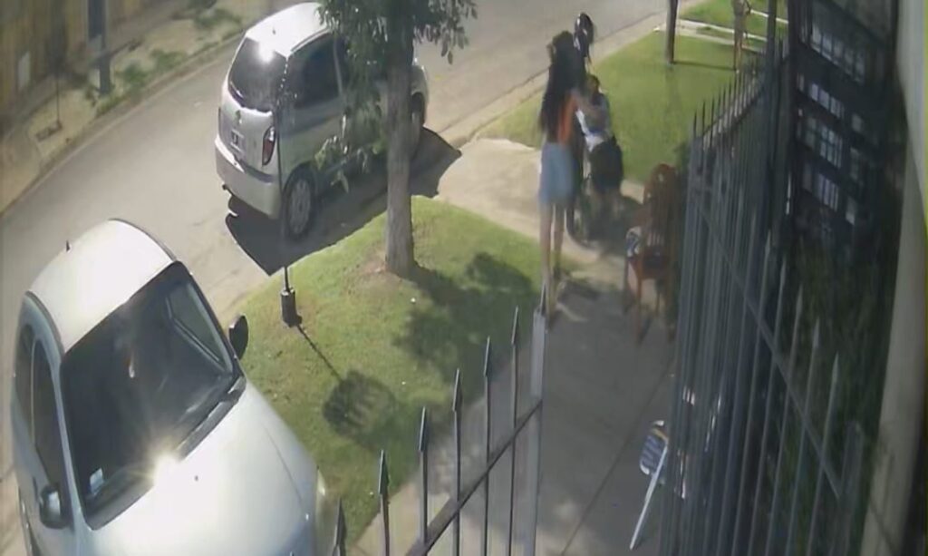 Las cámaras de seguridad del lugar registraron toda la secuencia: desde el acercamiento del sospechoso hasta su huida sin detenerse, a plena vista de vecinos y autos estacionados.