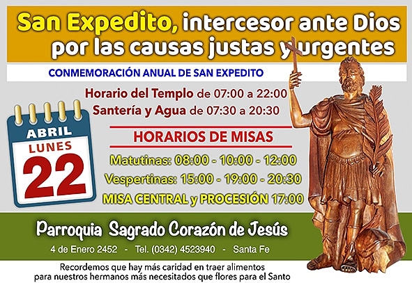 La iglesia permanecerá abierta de 7 a 22 y habrá misas a las 8, 10, 12, 15, 19 y 20:30. En tanto, la misa central y la procesión será a las 17.