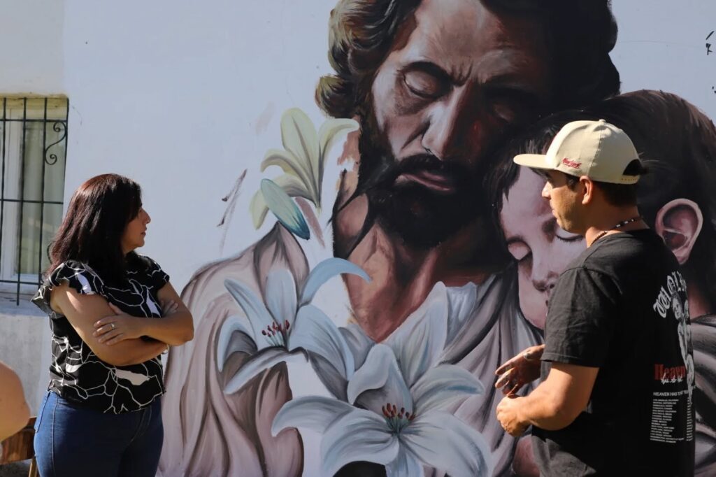 La presidenta del Concejo Municipal, Yanina Catinot, estuvo presente en la Capilla Cristo Obrero, acompañando el mural que el joven artista Alejandro Marengo está realizando.
