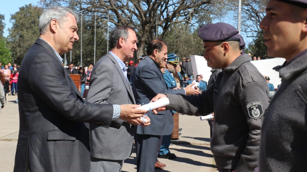 El acto de egreso se realizó en el Instituto de Seguridad Publica y contó con la presencia del secretario de Gestión Social e Institucional, Horacio Córdoba Ríos; la directora de Bienestar Policial, Luz Rondina; y el intendente de Recreo, Omar Colombo, entre otros.