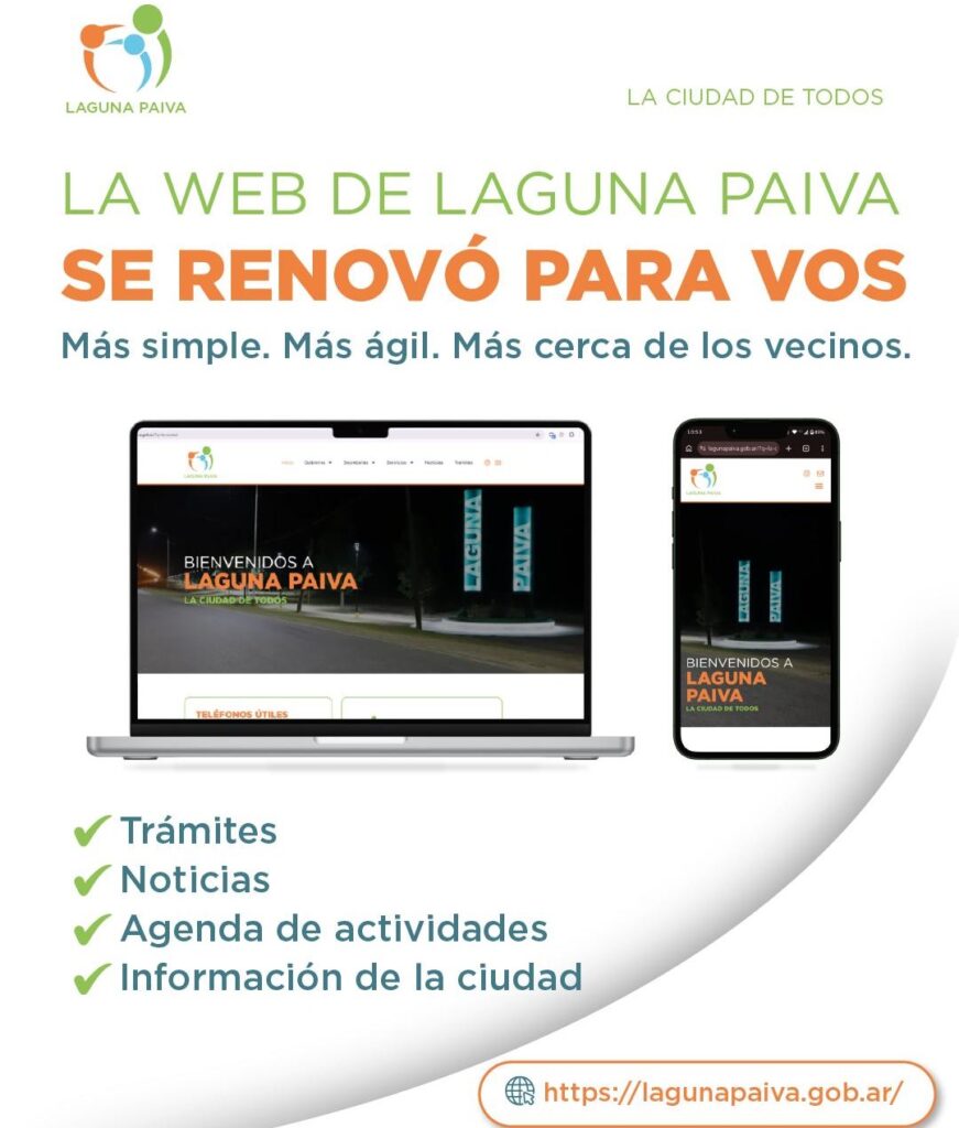 La Municipalidad de Laguna Paiva presentó hoy, a través de sus redes sociales, el nuevo sitio web del municipio, con el fin de construir una ciudad más moderna, accesible y cerca de cada vecino.