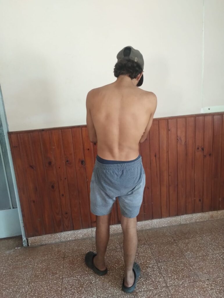 Personal de la sala de monitoreo local, advirtió que un joven estaría trasladando una rueda de vagón. Al llegar la policía el delincuente de escondió entre los yuyos para luego darse a la fuga pero es aprehendido.