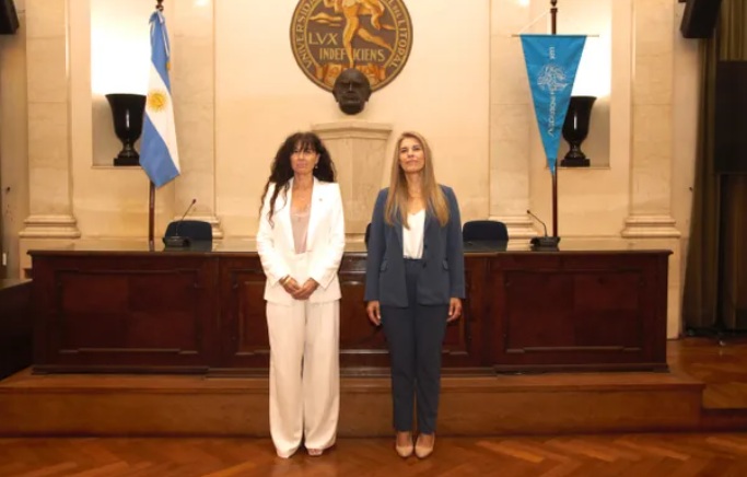 La flamante rectora también subrayó el hecho histórico de que por primera vez dos mujeres conduzcan la universidad, marcando un cambio institucional significativo.