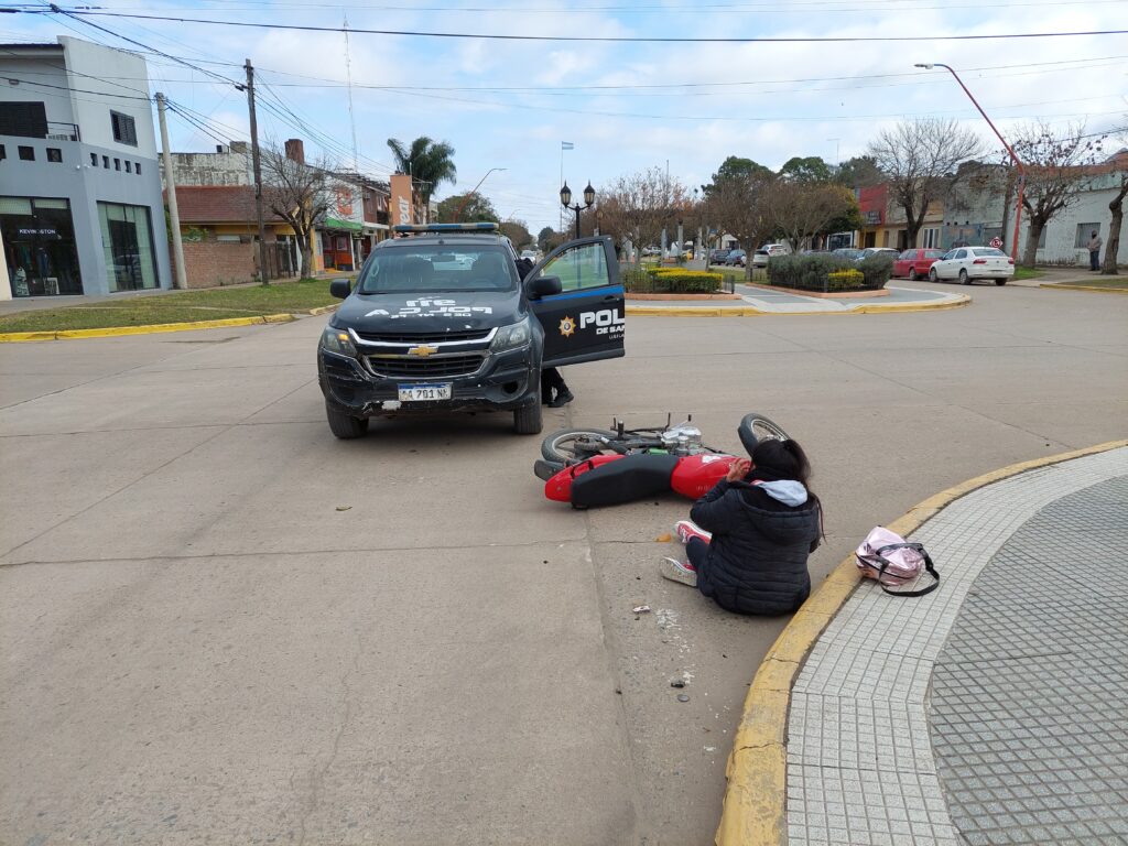 Esta mañana se produjo el siniestro vial entre una motocicleta y una camioneta policial. Una joven resultó con heridas leves.