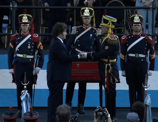 Milei también hizo referencia a los episodios en los que el sable fue robado en 1963 y 1965 por sectores de la juventud peronista, hechos que calificó como “actos de terrorismo contra el patrimonio nacional”. Explicó que en 1967 el sable quedó bajo custodia del Regimiento hasta 2015, cuando se ordenó su regreso al Museo Histórico Nacional. “No debe sorprender que ahora ese mismo sector ponga el grito en el cielo”, ironizó.