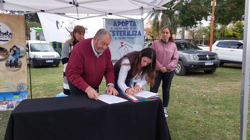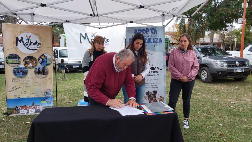 En la tarde del sábado, se llevó a cabo en Monte Vera la firma de un convenio entre la comuna y la Asociación Civil «Misión Animal Ángel Gallardo» para llevar adelante un plan de equilibrio poblacional de caninos y felinos en el distrito. En el lugar estuvieron presentes el presidente comunal Alberto Pallero, la vicepresidenta comunal Marta Fanton e integrantes de la asociación.