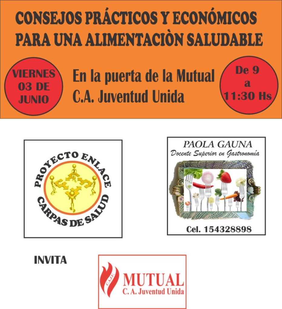 En esta oportunidad se realizará una jornada para brindar consejos prácticos y económicos para una alimentación saludable. La cita será este viernes 3 de junio de 9 a 11.30 horas frente a la puerta de la mutual, ubicada en General López 5843 de la vecina localidad de Monte Vera.
